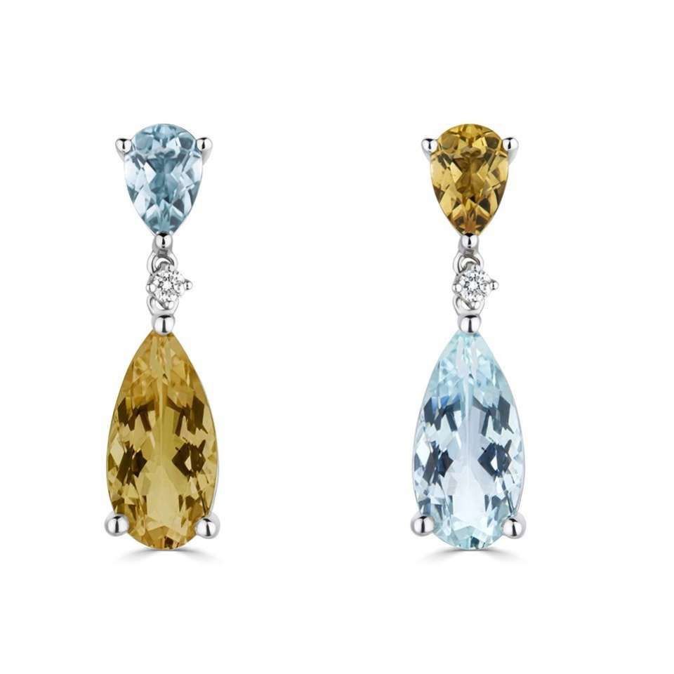 AQUAMARINE & CITRINE PEAR DROP EARRINGS.