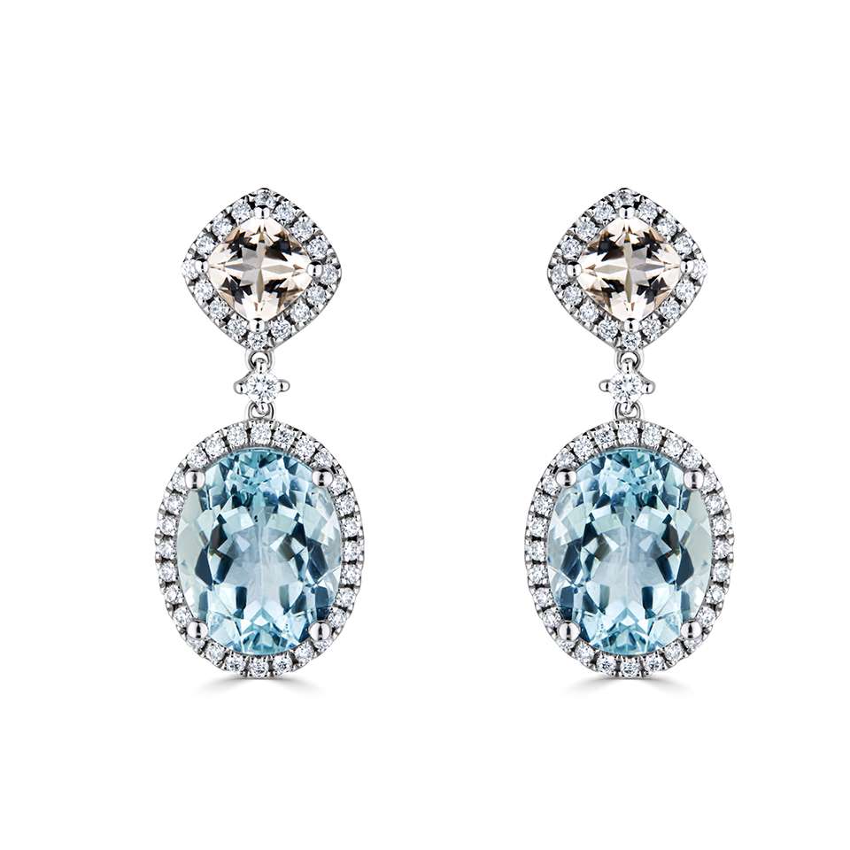 AQUAMARINE & MORGANITE EARRINGS.